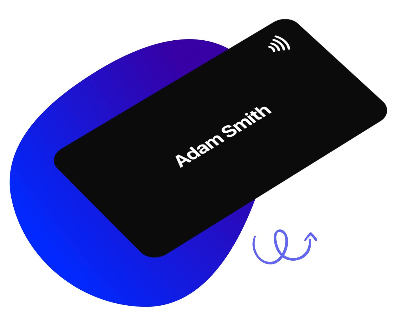 Each PurpleCard has a modern NFC chip, thanks to which your information is shared wirelessly. Bringing your PurpleCard near a compatible smartphone will automatically load all of your social profile cards, including Facebook, LinkedIn and Twitter information into the device. For older devices with no NFC capabilities, you can still access the all-in-one social media profile through the QR code on the back of your PurpleCard.